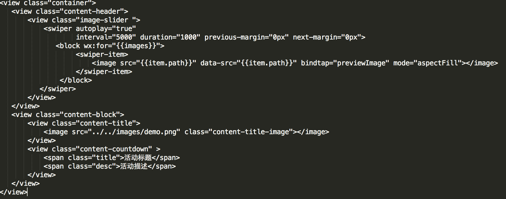 <view class=”content-header”>…&φ>±"lt;/view>定義內(nèi)容header部分(fēn)樣式,樣例代<↔碼中是(shì)個(gè)輪播圖;